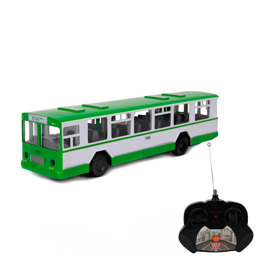 АВТОБУС "ТЕХНОПАРК" Р/У СВЕТ+ЗВУК, ОТКРЫВ. ДВЕРИ В РУСС. КОР. 24СМ в кор.2*12шт