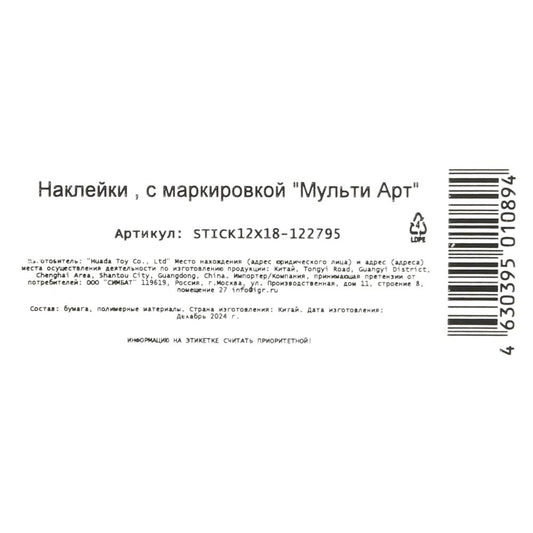 Наклейки бумажные 12х18 см, авокадо МУЛЬТИ АРТ в кор.500шт