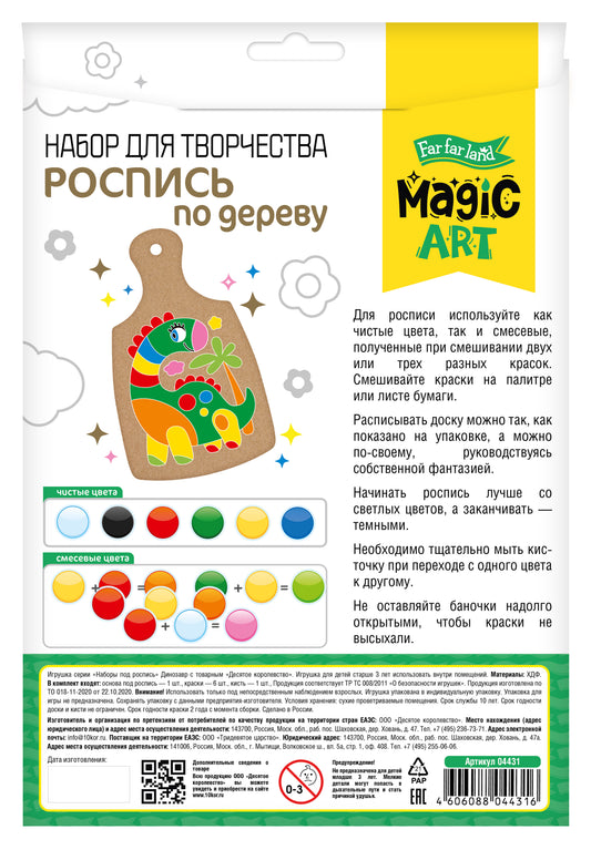 Набор для творчества Роспись по дереву "Динозавр" (разделочная доска, большой конверт)
