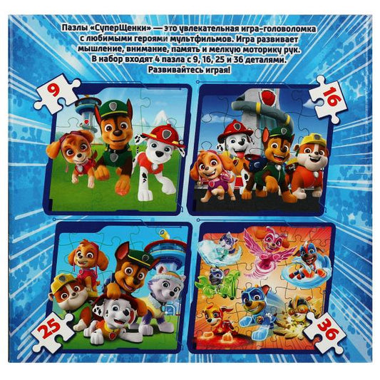 Суперщенки. Пазл классический в коробке. Набор пазлов 4 в 1. 175х175х50мм. Умные игры в кор.20шт