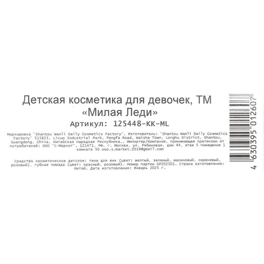 Косметика ДЛЯ ДЕВОЧЕК Сказочный Patrul тени, помада, аппликатор, кор МИЛАЯ ЛЕДИ