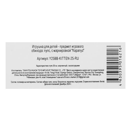 Пупс озвучка Шаинский музыка 25 см, пьет, пишет, закр. глазки, 4 акс КАРАПУЗ в кор.24шт