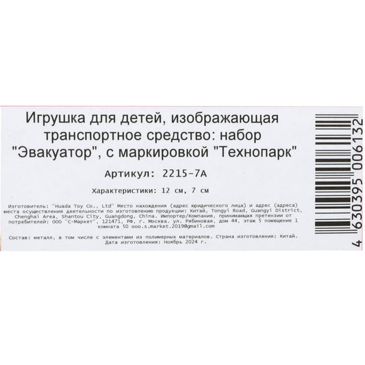 Машина металл ЭВАКУАТОР эвакуатор 12см с машинкой 7см, инерционный подвижный КРАН Технопарк в кор.2*144шт