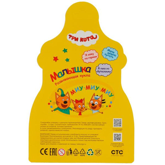 Пупс функц Три Кота 15см, пьет, пис, бутылочка, на блистере КАРАПУЗ в кор.72шт