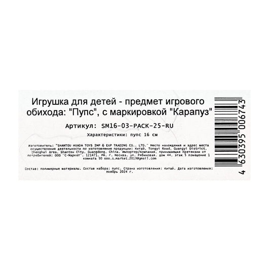 Пупс 16 см, в упаковке КАРАПУЗ в кор.2*192шт
