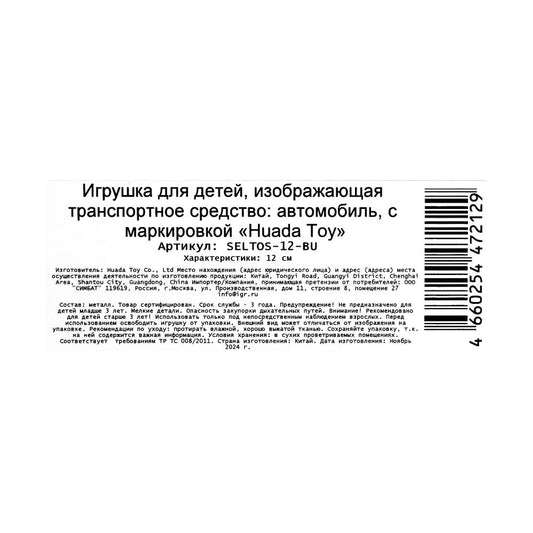 Машина металл KIA seltos длина 12 см, двери, багажник., инерц, синий, кор. Технопарк в кор.2*36шт