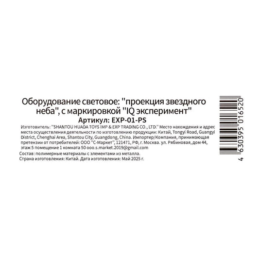 Опыты астрономия проектор "звездное небо", кор IQ Эксперимент в кор.2*24шт