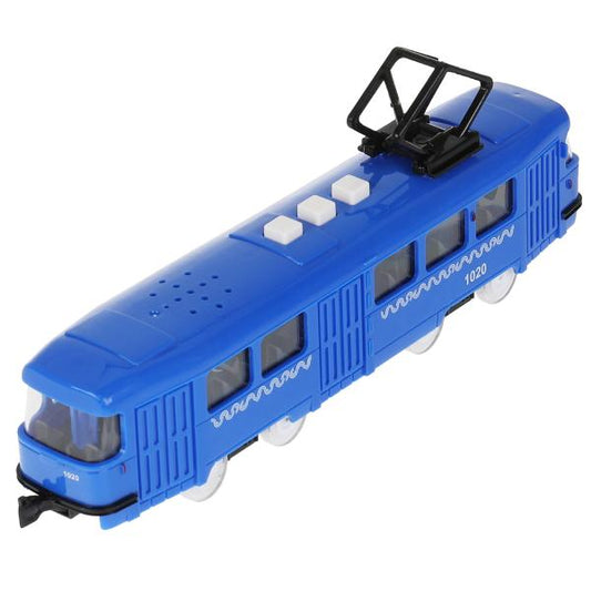 Модель пластик свет-звук ТРАМВАЙ МЕТРОПОЛИТЕН 21 см, 3 кноп, ин, синий, кор. Технопарк в кор.48шт