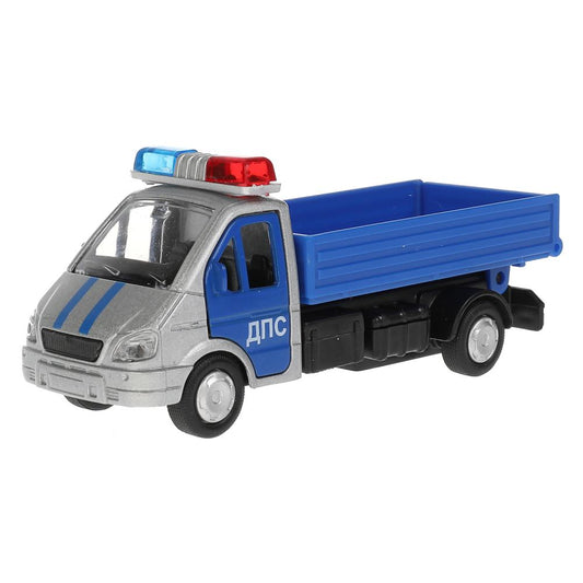 Машина металл ГАЗЕЛЬ 3302 САМОСВАЛ ПОЛИЦИЯ, 12 см, дв., баг., инерц., кор. Технопарк в кор.2*24шт