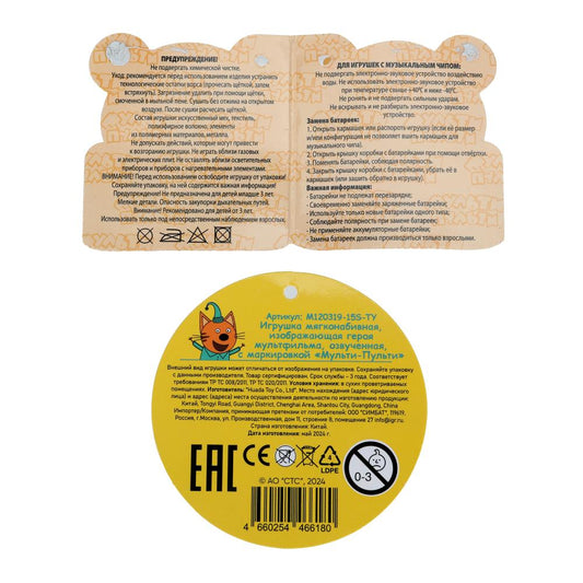 Игрушка мягкая Три Кота три кота Компот 16см, с глазами, озвучка. "МУЛЬТИ-ПУЛЬТИ" в кор.24шт