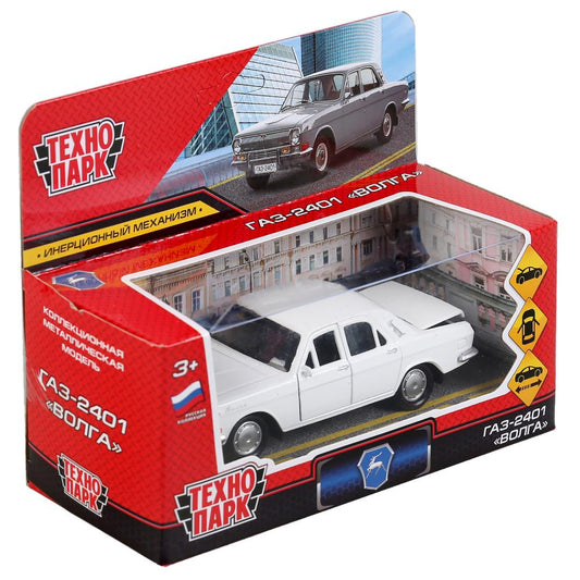 Машина металл ГАЗ-2401 ВОЛГА длина 12 см, двери, багажник, инерц, белый, кор. Технопарк в кор.2*36шт