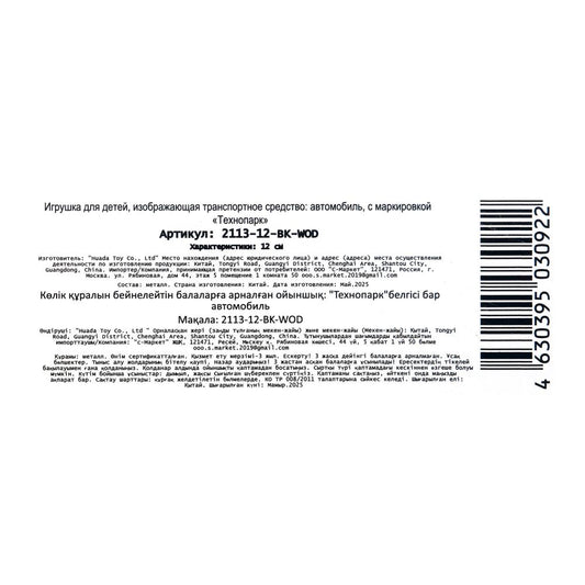 Машина металл ваз-2113 12 см, двери, багажник, инер,черный, кор. Технопарк в кор.2*36шт