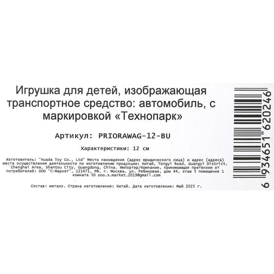 Машина металл LADA PRIORA длина 12 см, двери,багаж,инерц,синий, в кор. Технопарк в кор.2*36шт