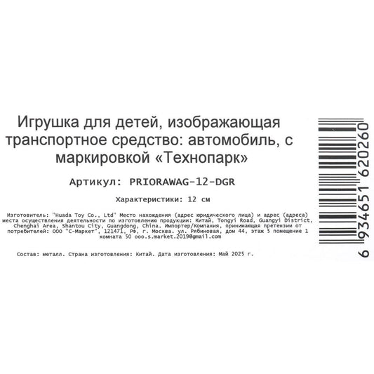 Машина металл LADA PRIORA длина 12 см, двери,багаж,инерц,темно-серый, в кор. Технопарк в кор.2*36шт