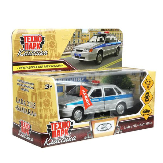 Машина металл свет-звук ваз-2115 самара ПОЛИЦИЯ 12 см, двери, багажник, кор. Технопарк в кор.2*36шт