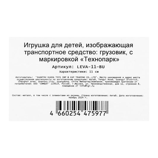 Машина металл Грузовичок Лева грузовичок Лёва, 11 см,баг.,ин.,кор. Технопарк в кор.2*30шт