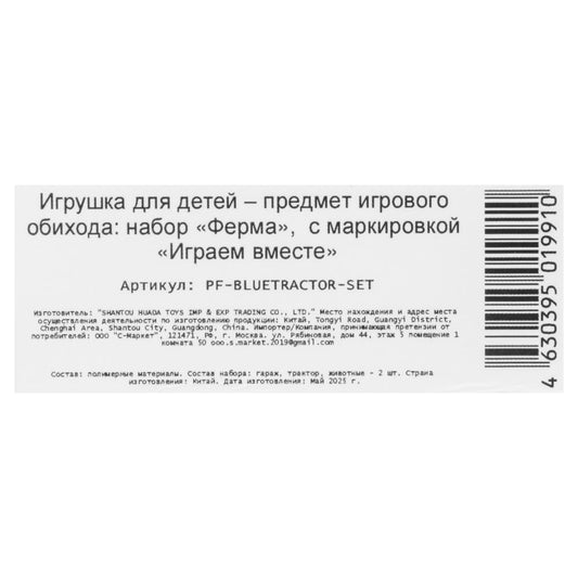 Модель пластик СИНИЙ ТРАКТОР ГАРАЖ с коровой и овцой ИГРАЕМ ВМЕСТЕ в кор.2*48шт