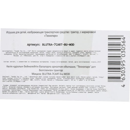 Машина металл СИНИЙ ТРАКТОР синий трактор с телегой 7,5 см, синий, кор. Технопарк в кор.2*36шт