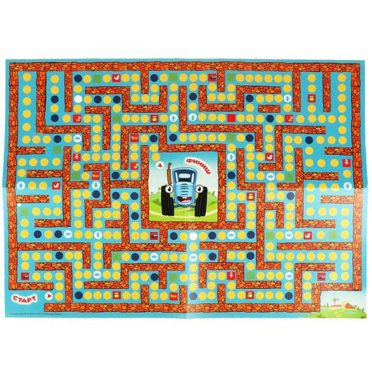 Лабиринт на ферме. Синий трактор. Настольная игра-ходила. 217х330х27мм. Умные игры в кор.20шт