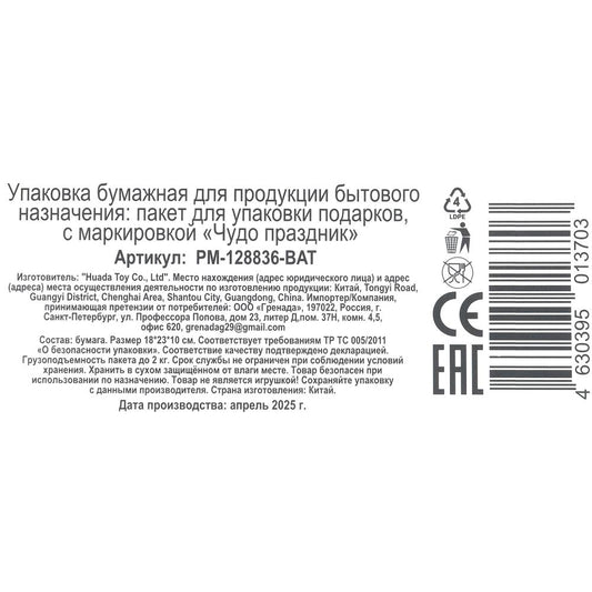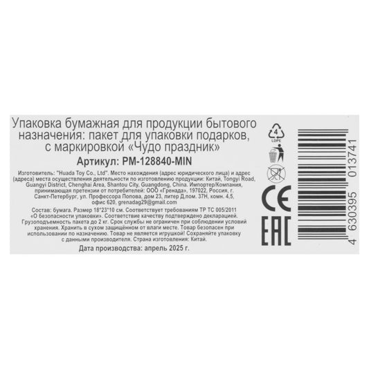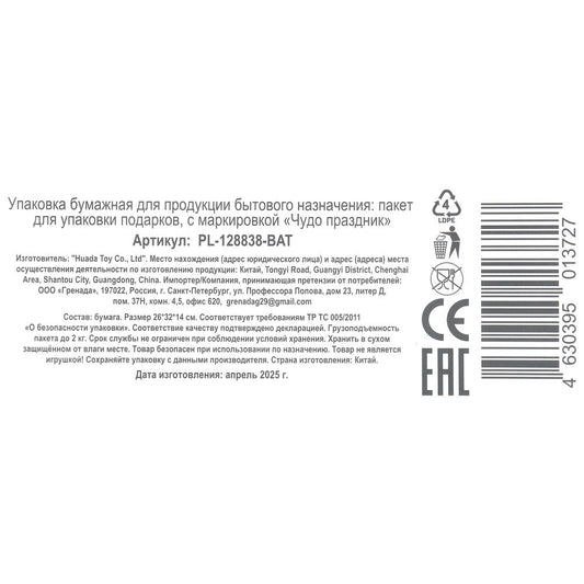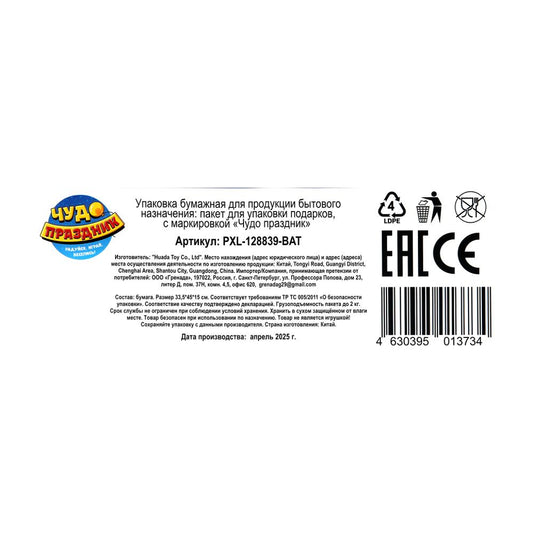 Пакет подарочный глянцевый xl,персонажи,140 гр/м2 ЧУДО ПРАЗДНИК в кор.144шт