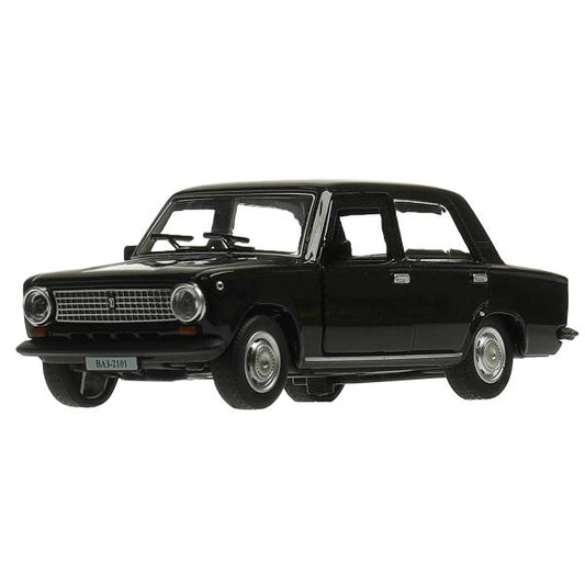 Машина металл ваз-2101 длина 12 см, двери, багажник, инерц, черный, кор. Технопарк в кор.2*36шт