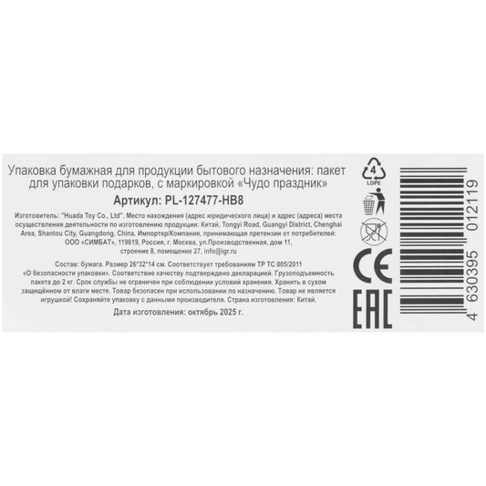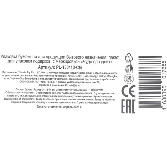 Пакет подарочный глянцевый l, 26*32*14 см ЧУДО ПРАЗДНИК в кор.24*12шт