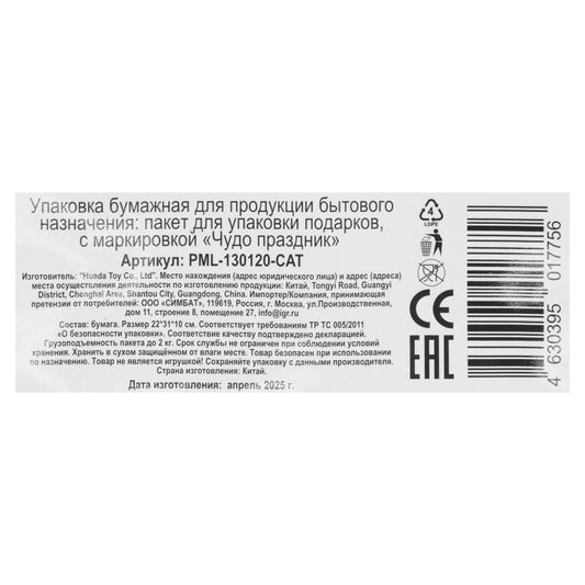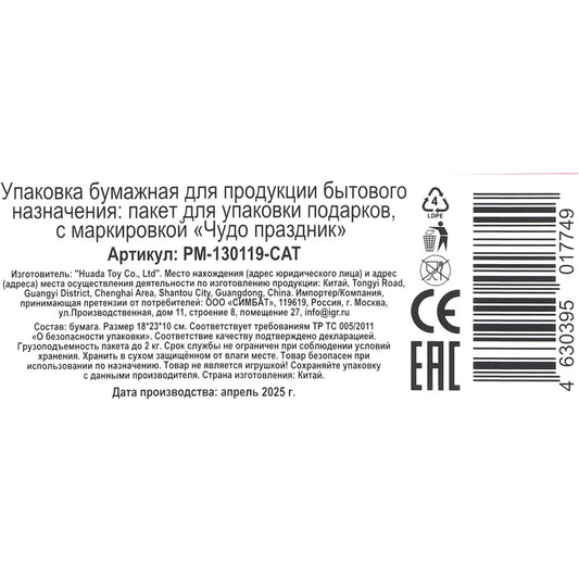 Пакет подарочный глянцевый м,котенок,140 гр/м2 ЧУДО ПРАЗДНИК в кор.12*12шт