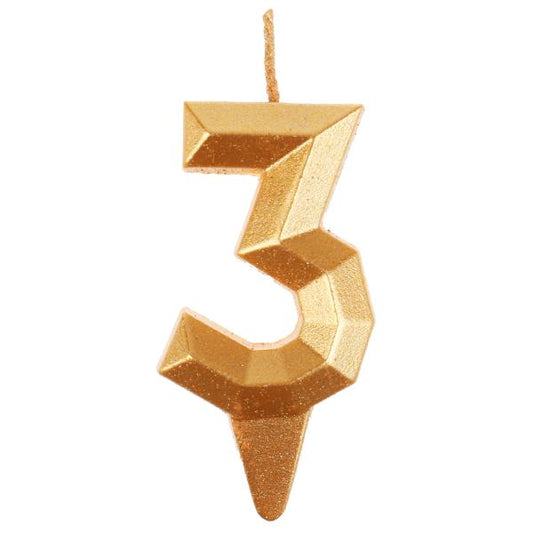 Свеча для торта, цифра "3" золото, блистер,с днем рождения ЧУДО ПРАЗДНИК в кор.48шт