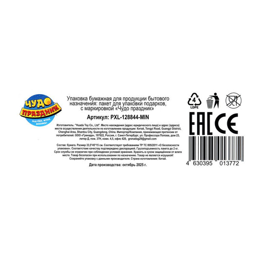 Пакет подарочный глянцевый л,поздравляю,140 гр/м2 ЧУДО ПРАЗДНИК в кор.10*12шт