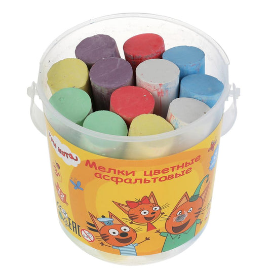 Мелки цветные асфальтовые для творчества, Три Кота 12 шт (6 цв), в ведре МУЛЬТИ АРТ в кор.24наб