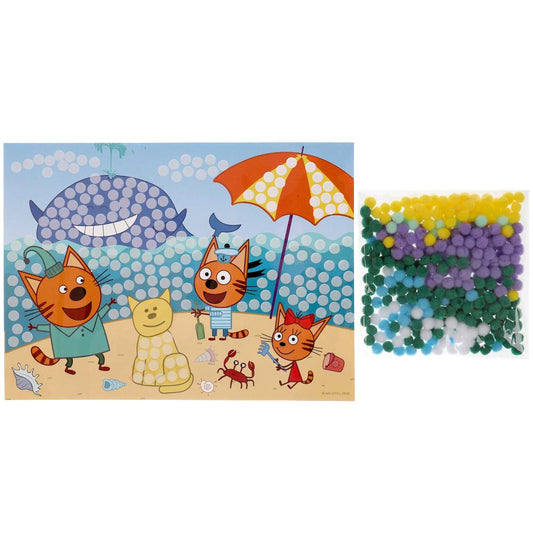 Набор д/детского тв-ва Три Кота аппликация из помпонов, 17*23 см МУЛЬТИ АРТ в кор.100шт