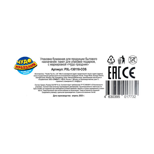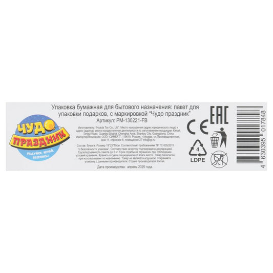Пакет подарочный МАТОВЫЙ л,космос,140 гр/м2 ЧУДО ПРАЗДНИК в кор.10*12шт