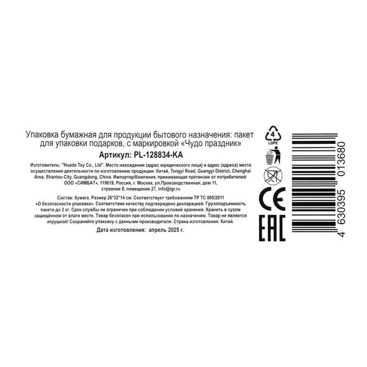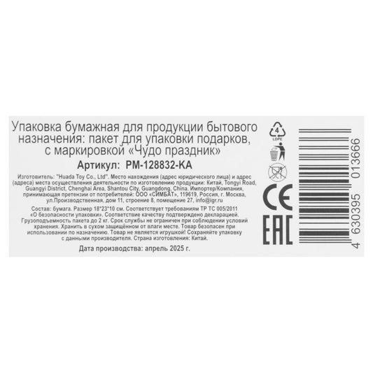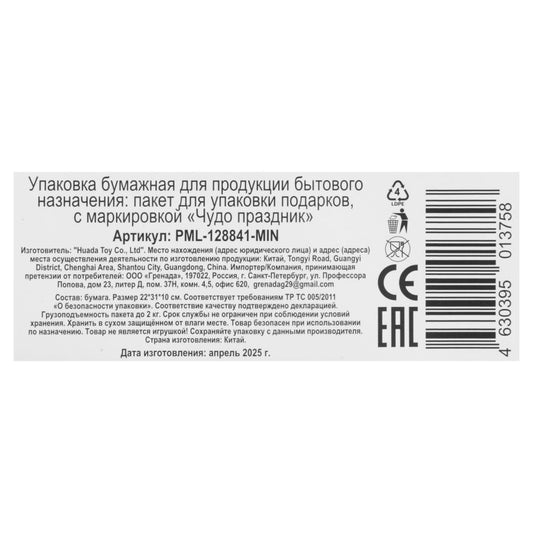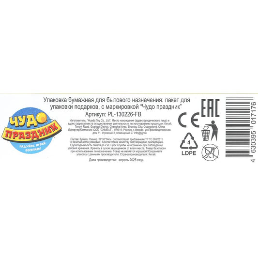 Пакет подарочный МАТОВЫЙ м,капибара,140 гр/м2 ЧУДО ПРАЗДНИК в кор.12*12шт