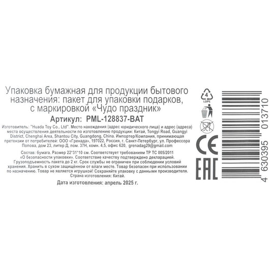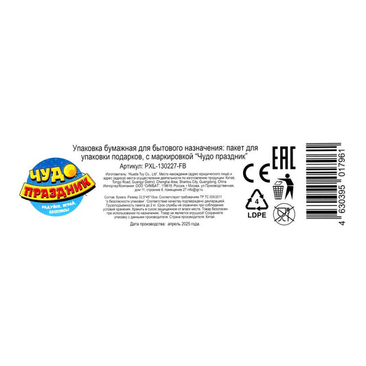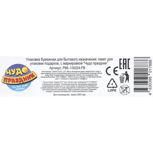 Пакет подарочный МАТОВЫЙ л,капибара,140 гр/м2 ЧУДО ПРАЗДНИК в кор.10*12шт