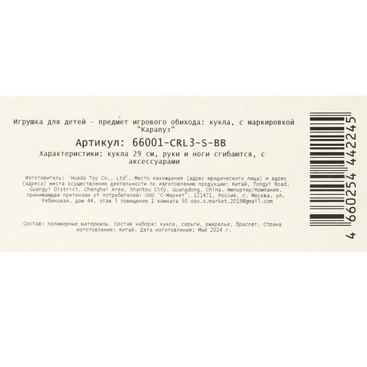 Кукла 29см София, руки и ноги сгиб., акс, кор КАРАПУЗ в кор.24шт