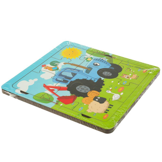 Игрушка деревянная пазл с рамкой СИНИЙ ТРАКТОР 15*15 см, бол.дет, термопакет Буратино в кор.20шт