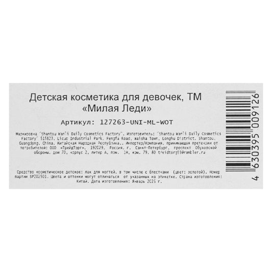 Косметика ДЛЯ ДЕВОЧЕК лак для ногтей с блестками в пластике МИЛАЯ ЛЕДИ в кор.2*240шт
