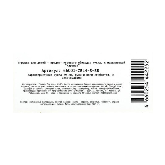 Кукла 29см София, руки и ноги сгиб., акс, кор КАРАПУЗ в кор.24шт