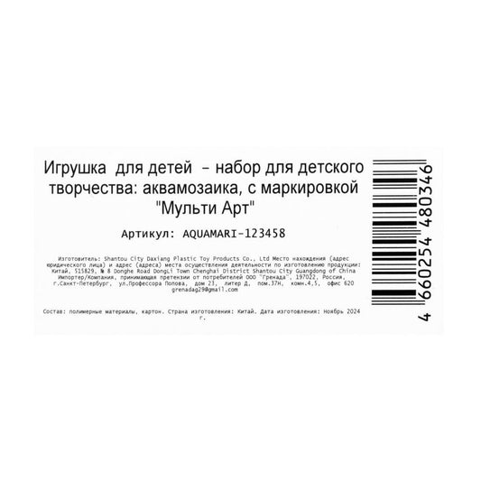 Аквамозаика 100 бусин кошечка мари МУЛЬТИ АРТ в кор.48шт