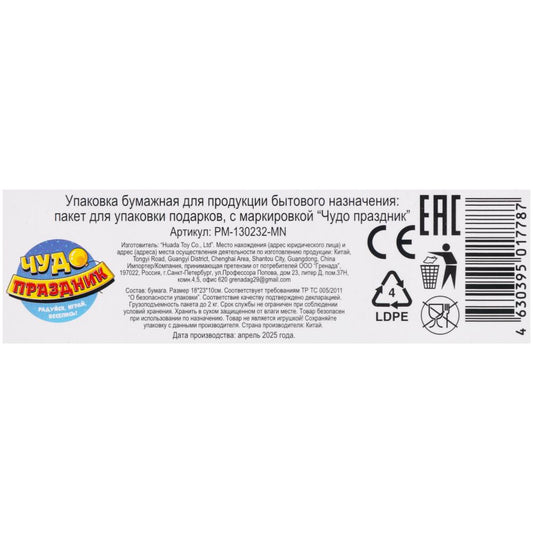 Пакет подарочный глянцевый l,пиксели,140 гр/м2 ЧУДО ПРАЗДНИК в кор.10*12шт
