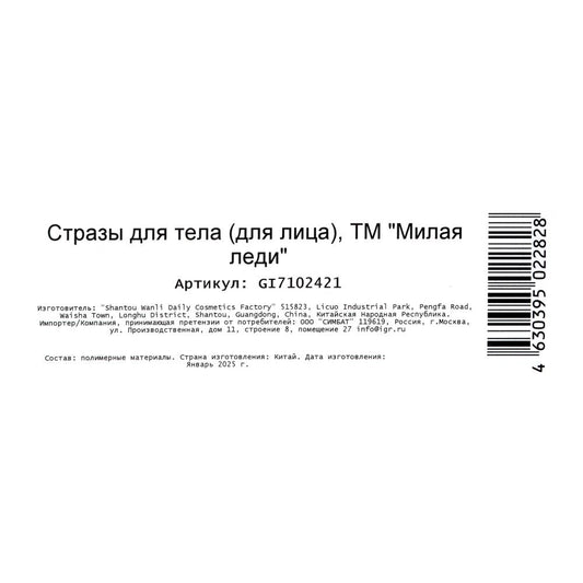 Косметика ДЛЯ ДЕВОЧЕК стразы для лица МИЛАЯ ЛЕДИ в кор.6*24шт
