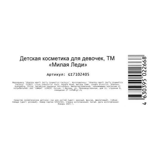 Косметика ДЛЯ ДЕВОЧЕК набор косметики: пилочка, помада, лаки МИЛАЯ ЛЕДИ в кор.24шт