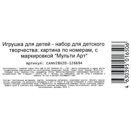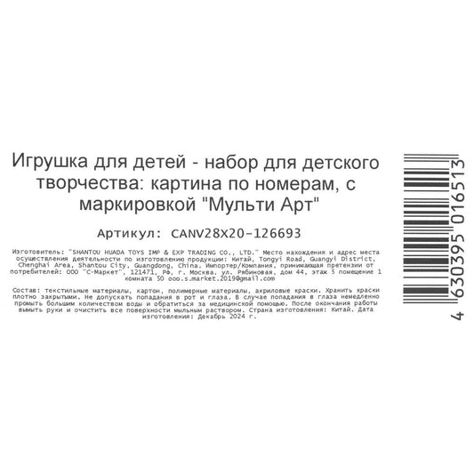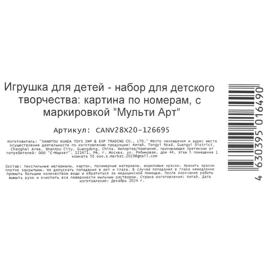Набор д/дет тв-ва, холст по номерам на картоне 28,5*20 см хаски МУЛЬТИ АРТ в кор.48шт