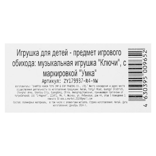 Музыкальные ключи Шаинский музыка 20 песен и фраз.блист.бат Умка в кор.4*108шт