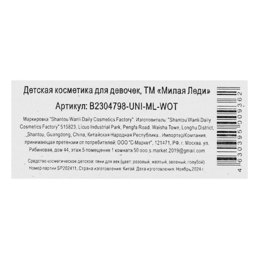 Косметика ДЛЯ ДЕВОЧЕК набор косметики: тени для век и аппликатор МИЛАЯ ЛЕДИ в кор.4*216шт