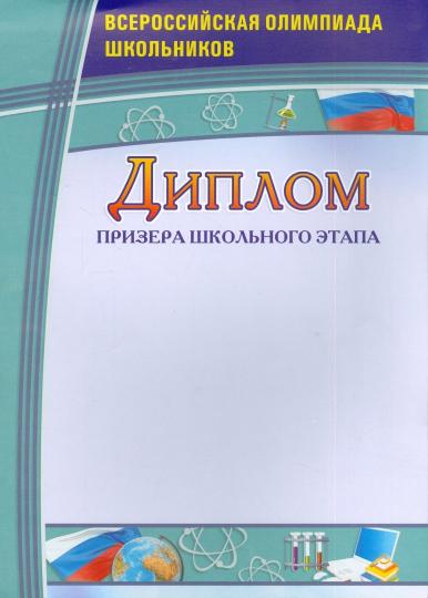 Диплом призера школьного этапа. Всероссийская олимпиада школьников. (Формат А4, бумага мелованная пл.250)