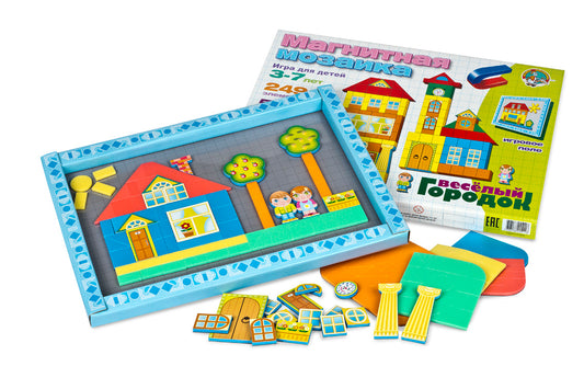 Мозаика магнитная. Веселый городок (5 цветов, 220 магнитных фишек, 30 дополнительных элементов)
