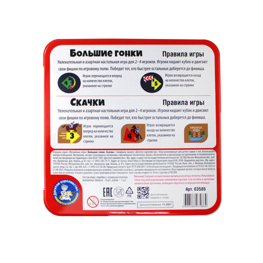 Игра магнитная в жестяной коробочке "Большие гонки. Скачки"
