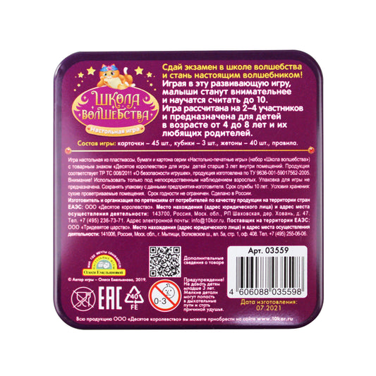 Игра настольная "Школа волшебства" (жестяная коробочка)