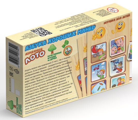 ЛОТО ДЕРЕВЯННОЕ "АЗБУКА ХОРОШИХ МАНЕР" в кор.14шт
